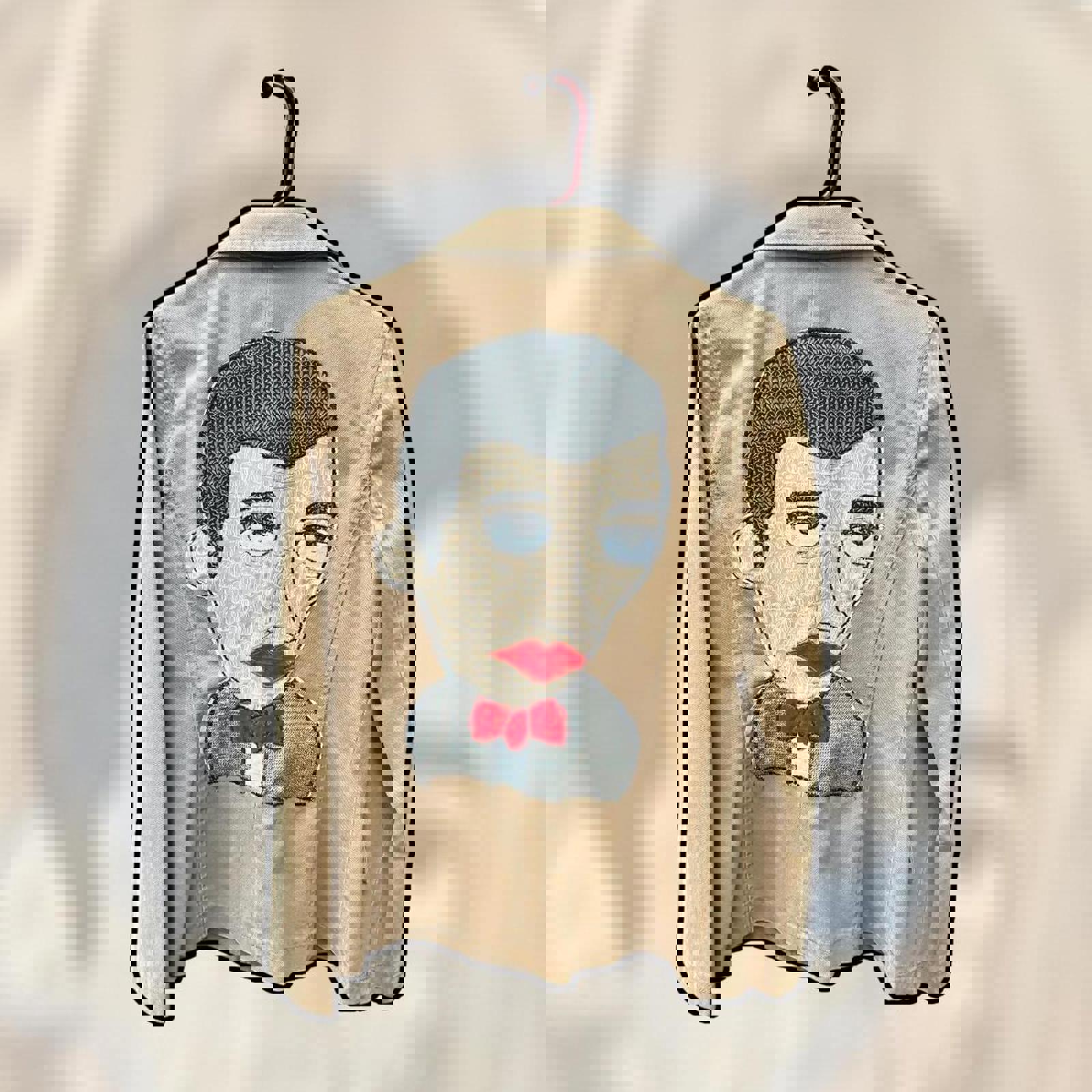 This piece blends quirky nostalgia with tailored charm, perfect for anyone who loves vintage character, cult classics, and statement fashion.