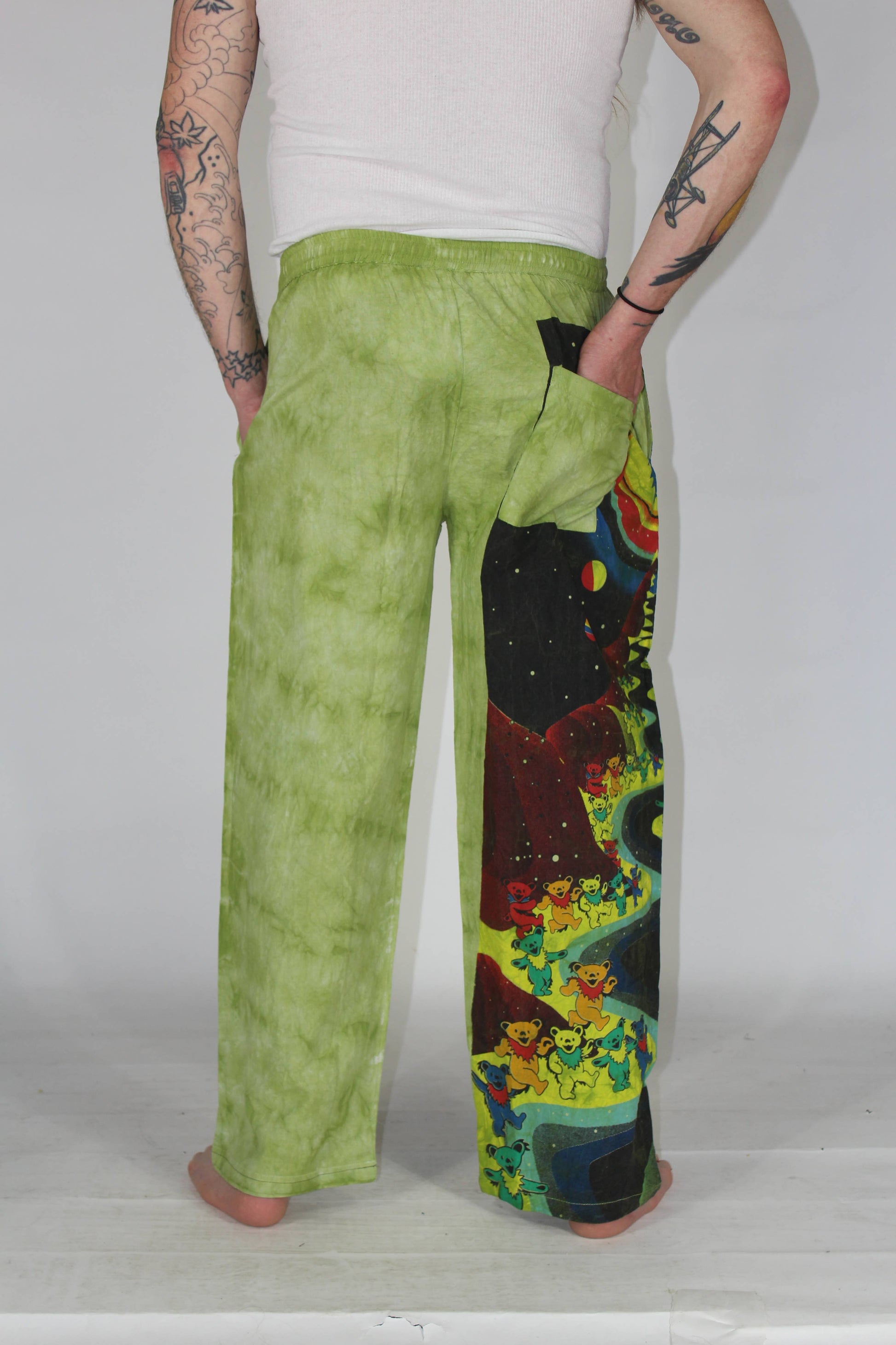 Psychedelic Journey Pants. Cotton Wide leg Drawstring unisex pants with Grateful Dead Psychedelic Print.